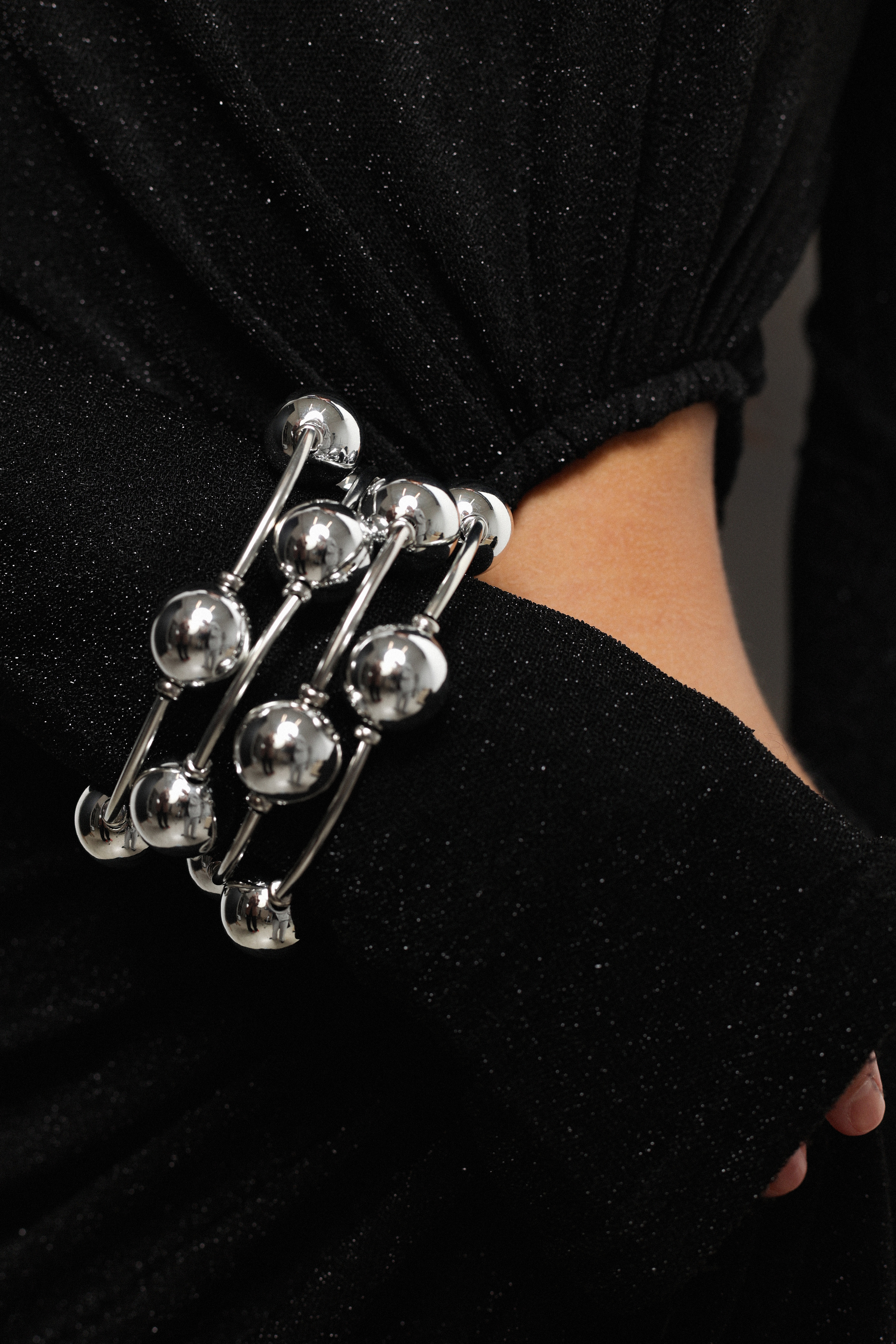 Чёткая геометрия и зеркальный блеск металла. Подвижные элементы создают ритм и подчёркивают форму запястья. Заметный акцент для ваших образов. В комплекте 6 браслетов.