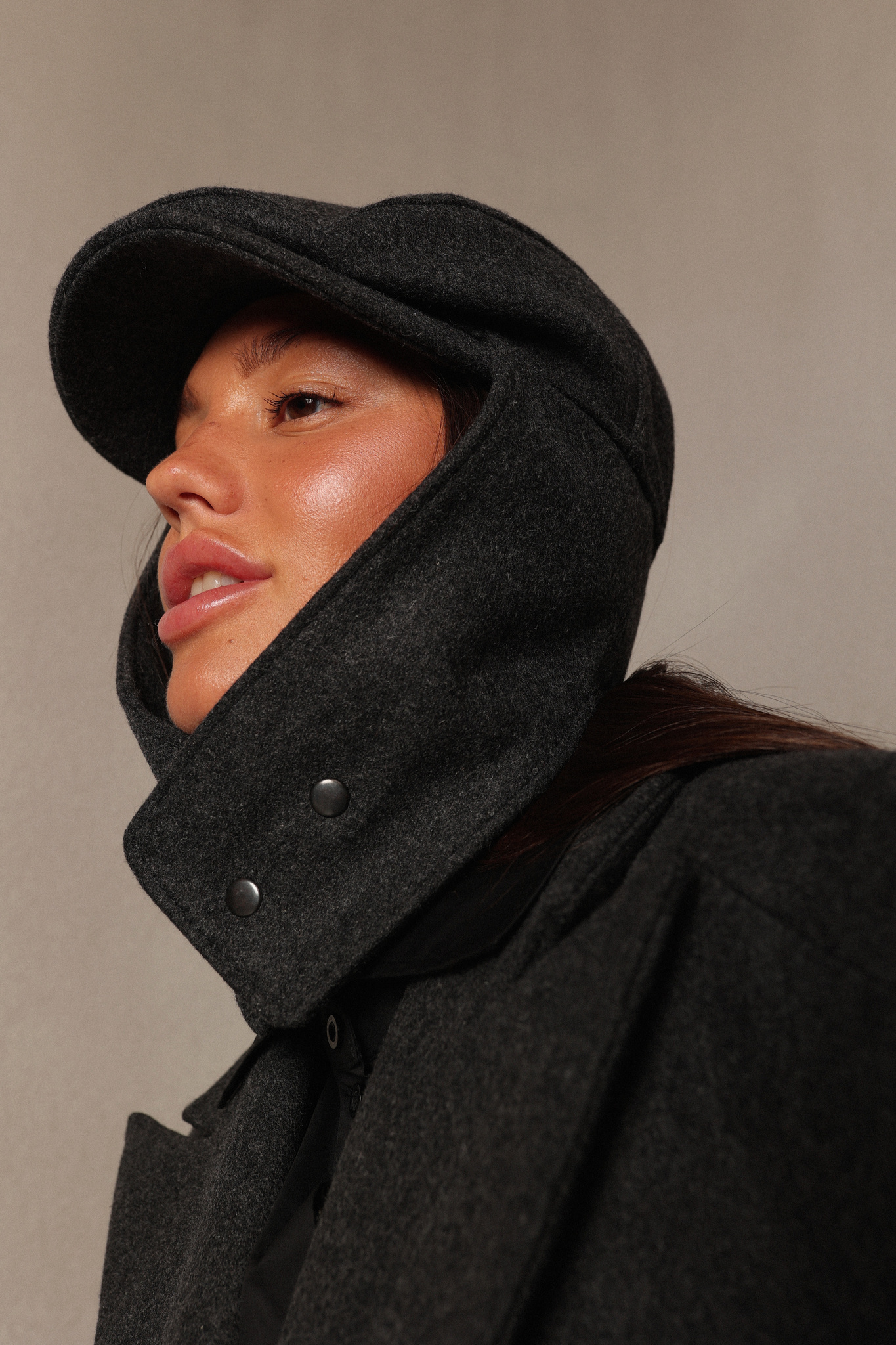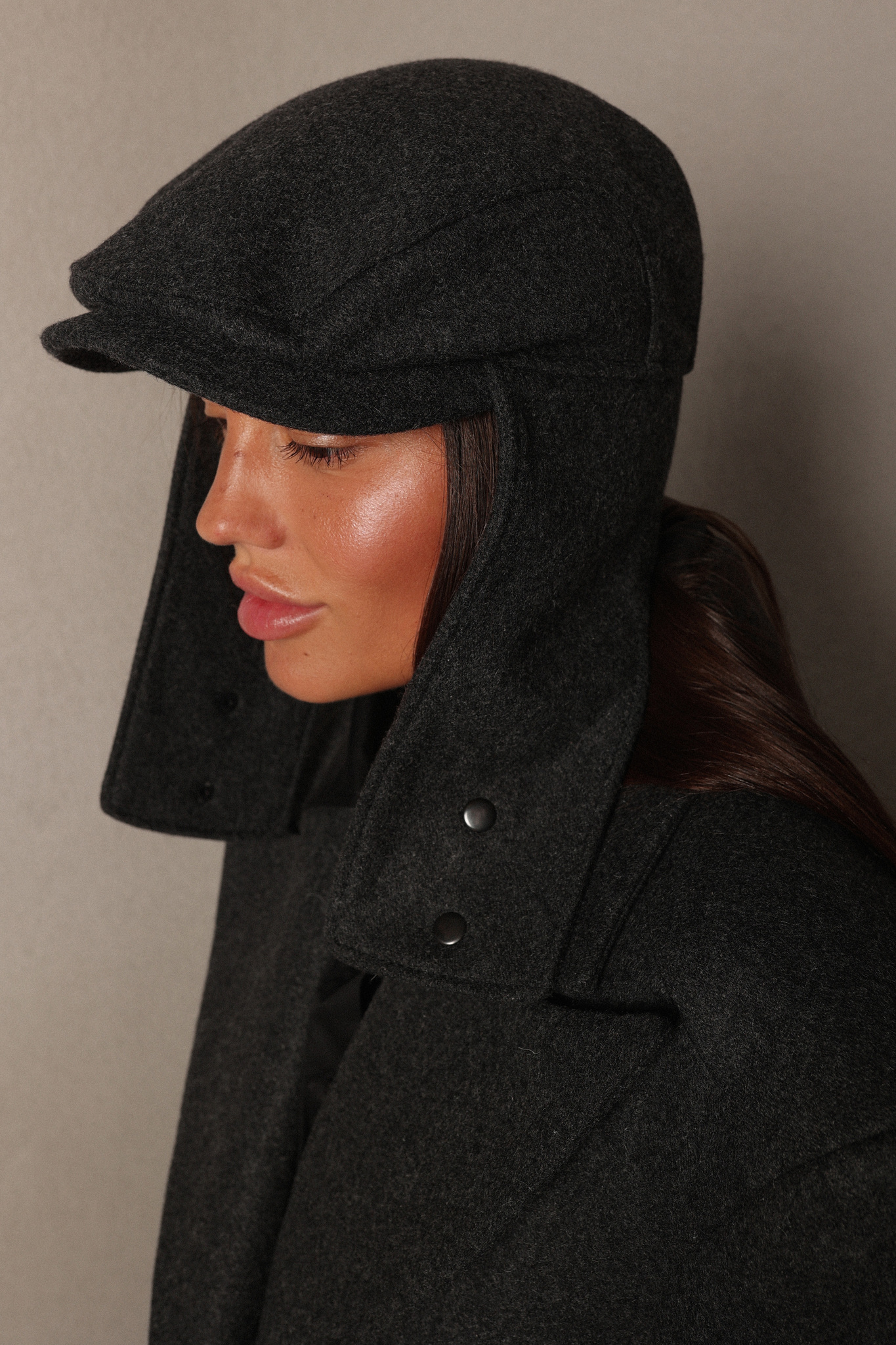 Кепка из формоустойчивого сукна с ушками, застежка на кнопки.