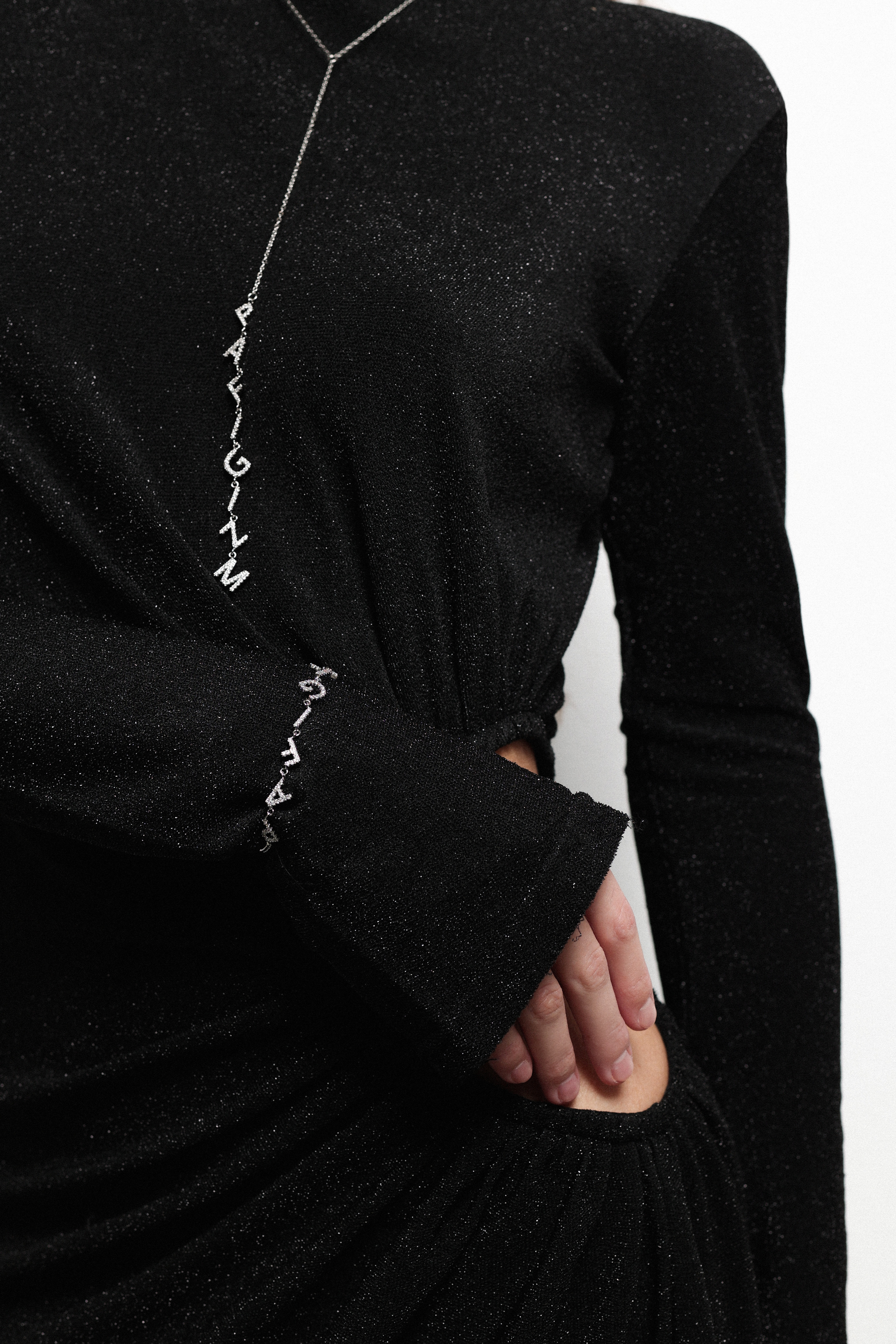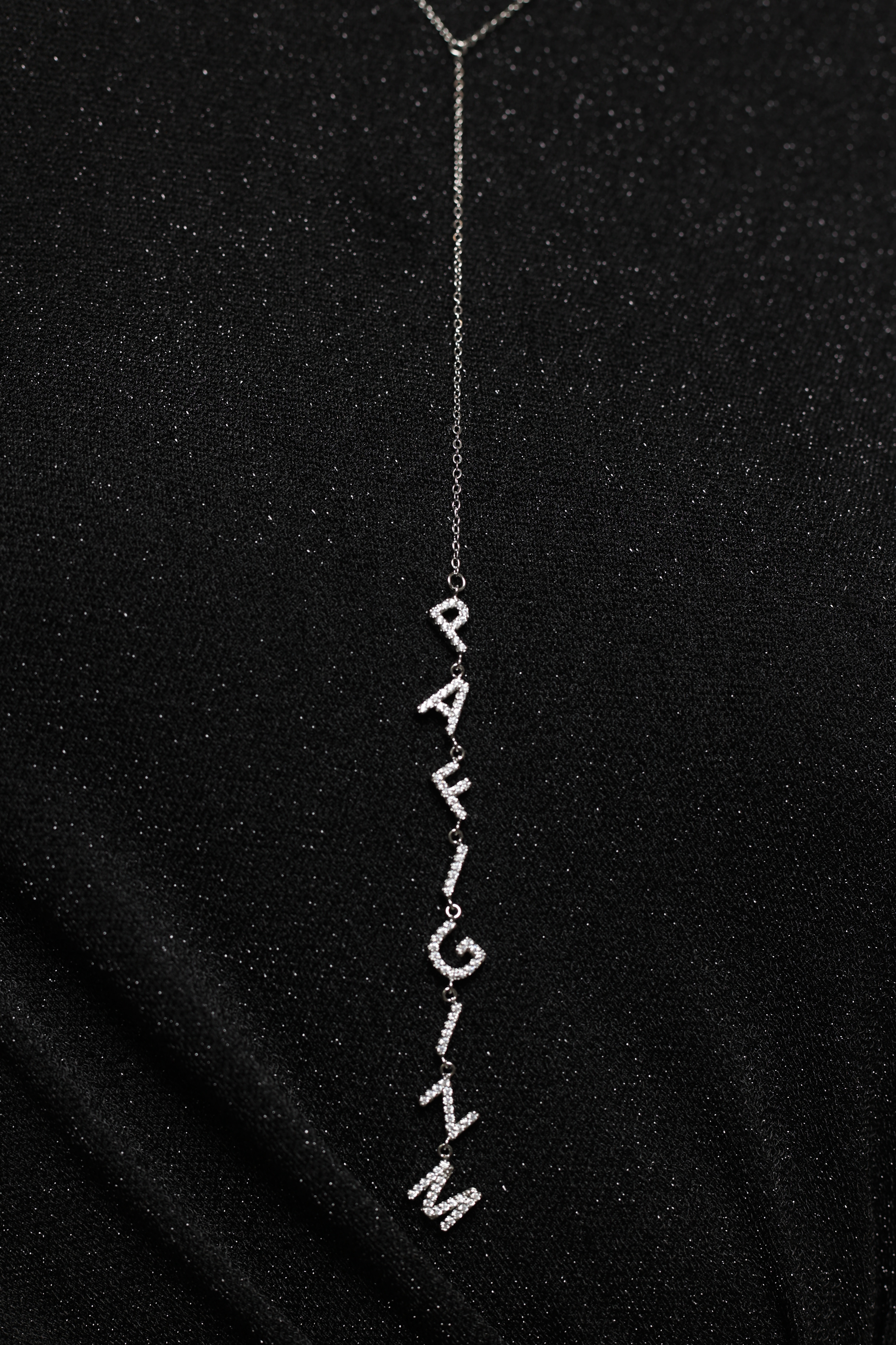 Тонкая цепочка с вертикальной подвеской из букв образует вытянутую линию и подчёркивает силуэт. Лаконичный дизайн со смыслом -  акцент, который говорит без слов.