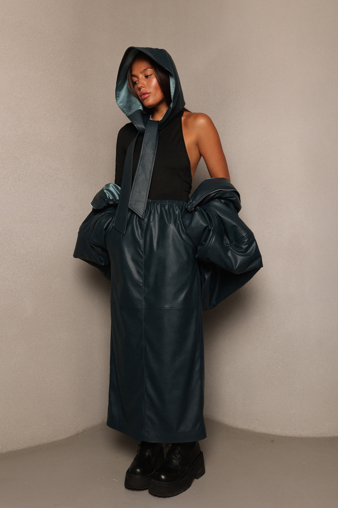 Косынка-капюшон с козырьком из мягкой экокожи на подкладе.