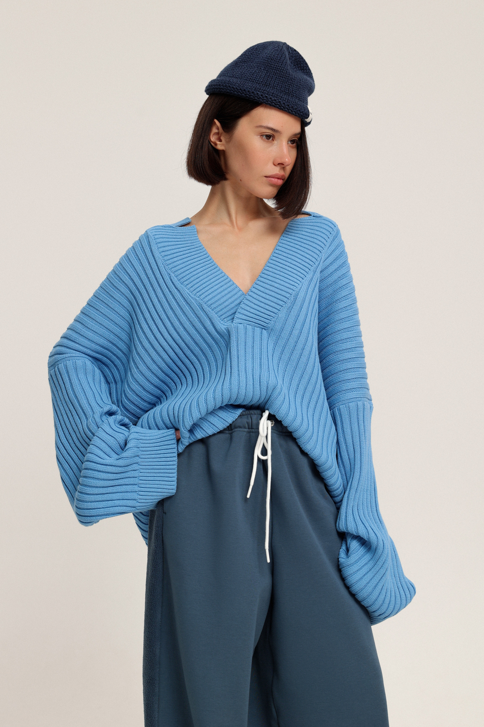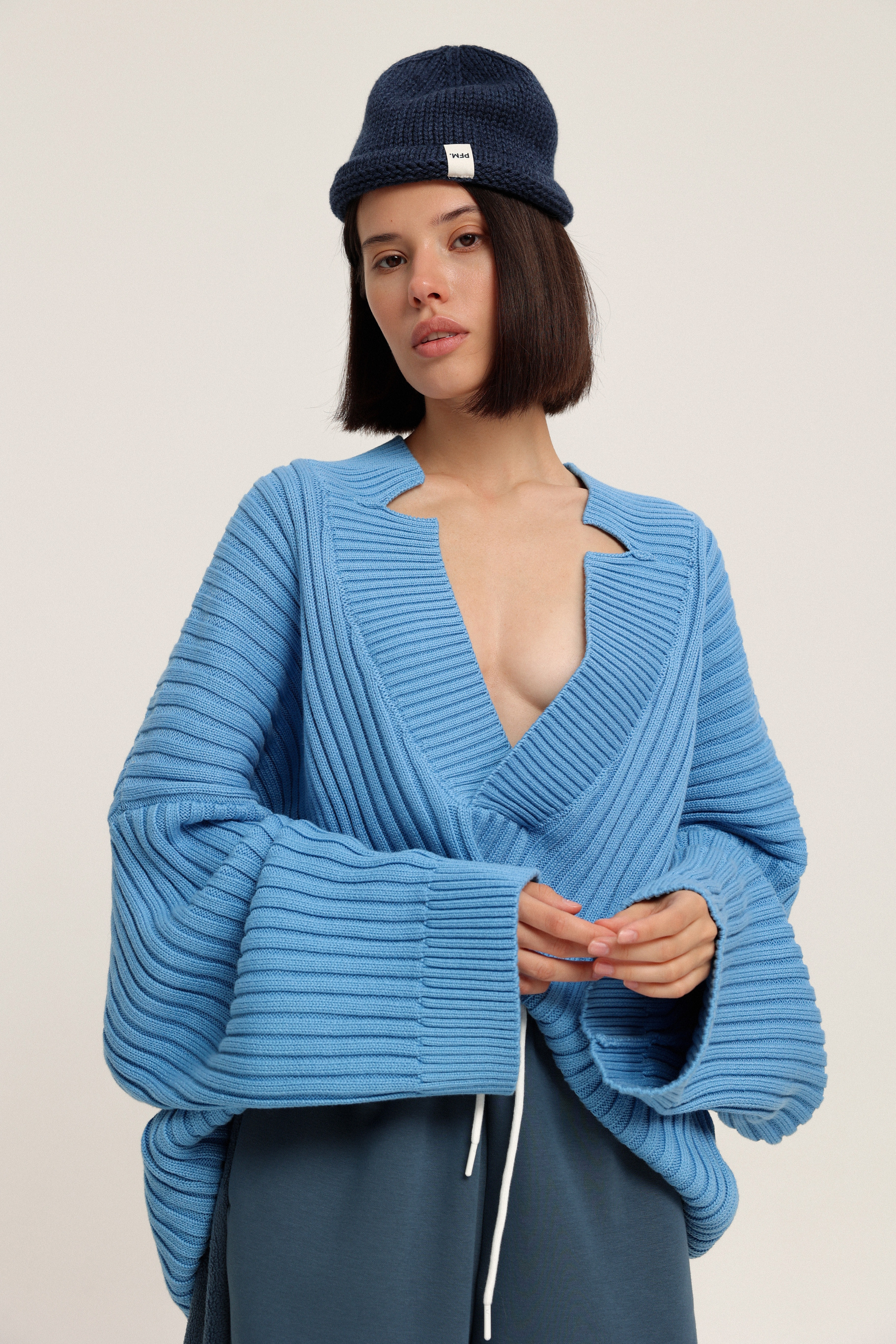 Вязаное оверсайз платье-джемпер с глубоким вырезом и лацканами.