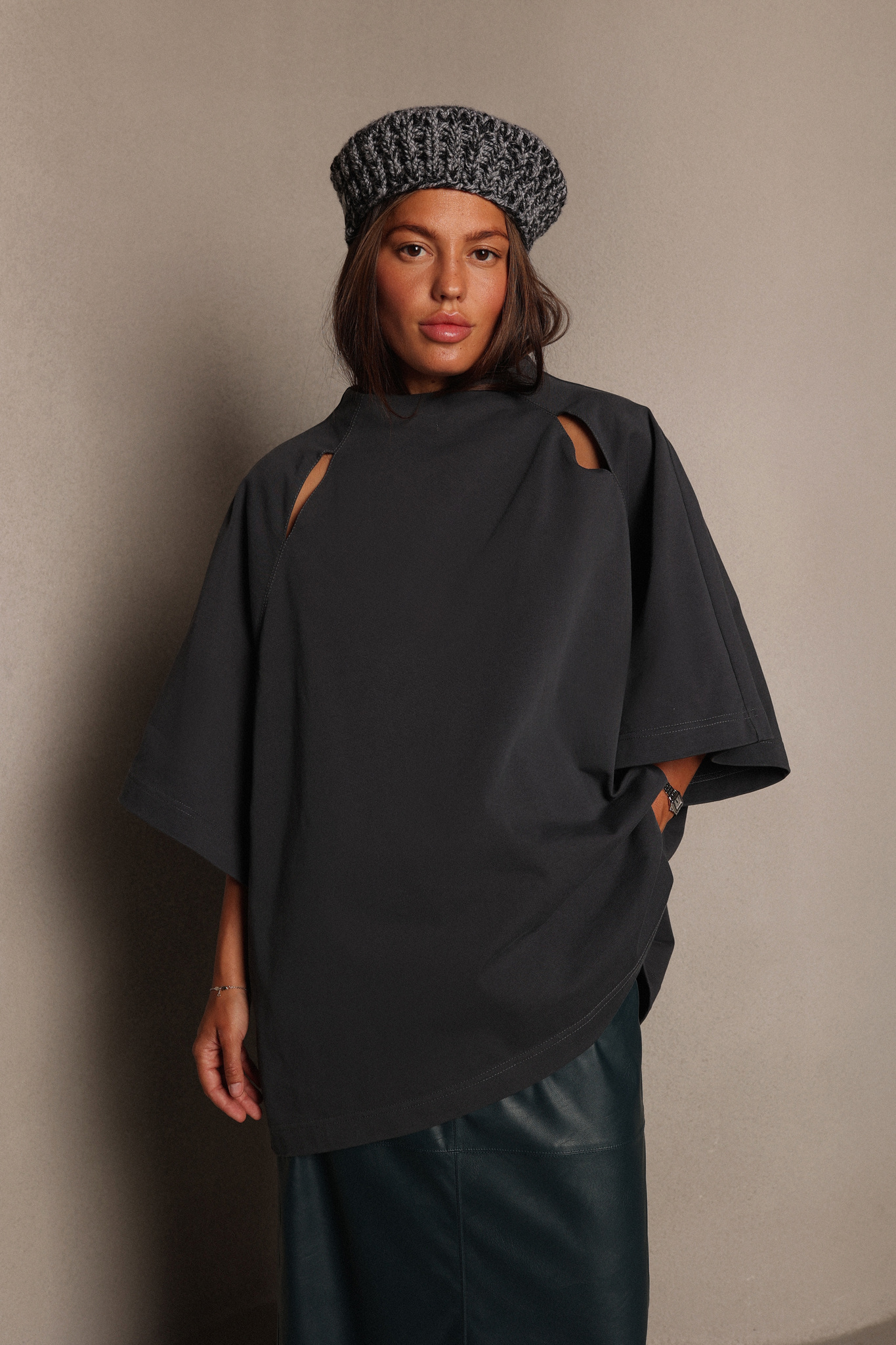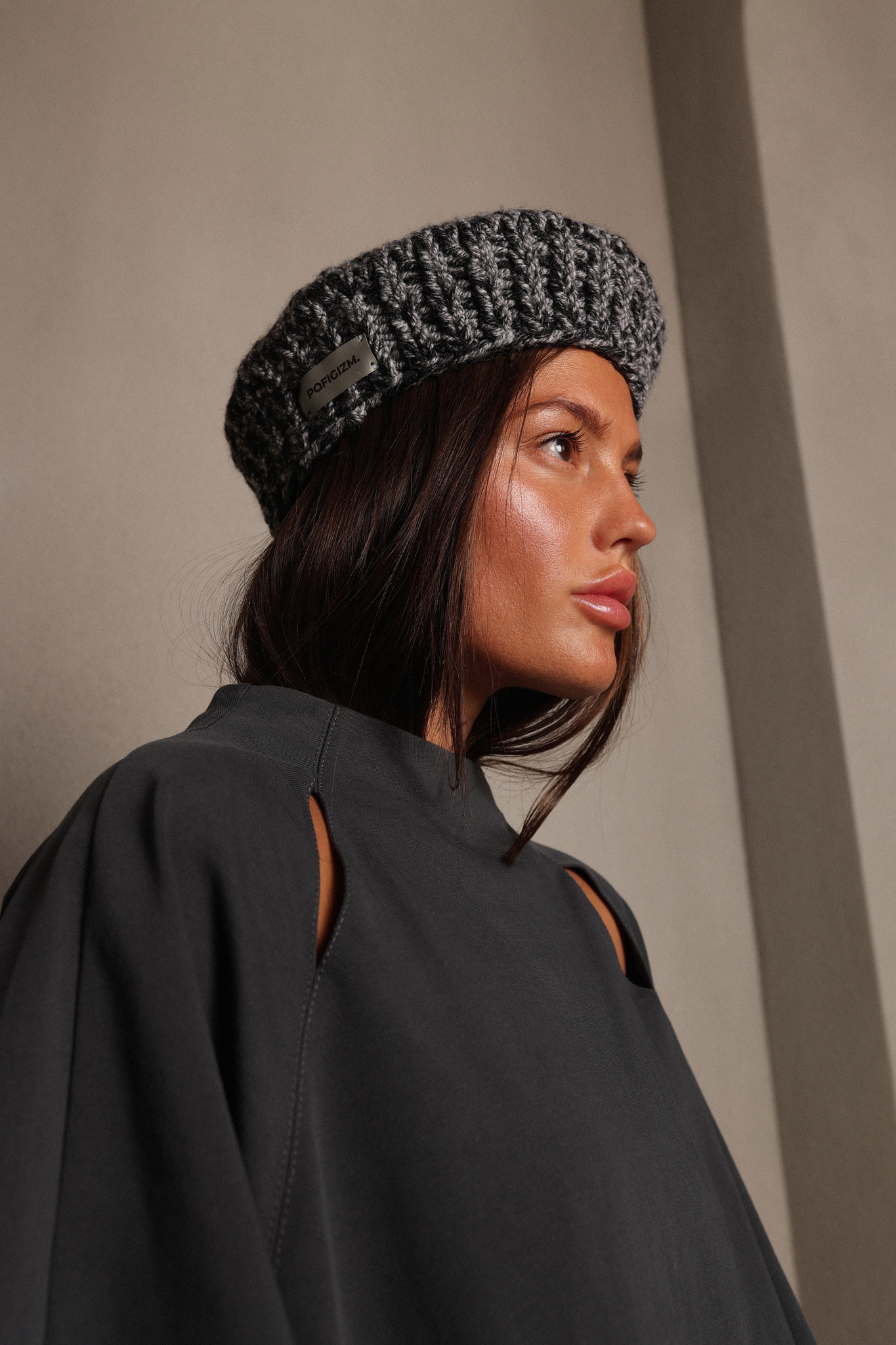 Формоустойчивая шапка ручной вязки в виде таблетки.