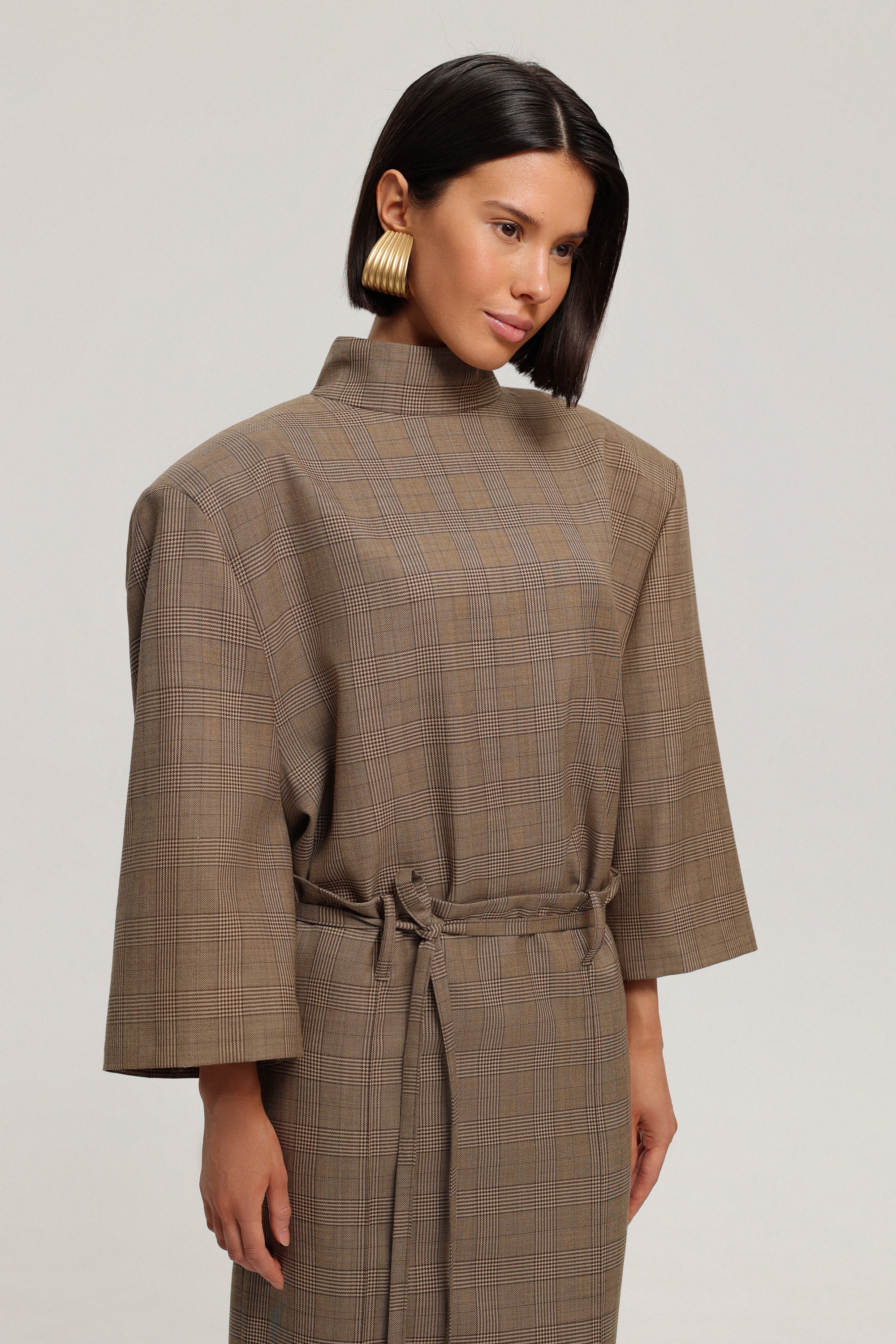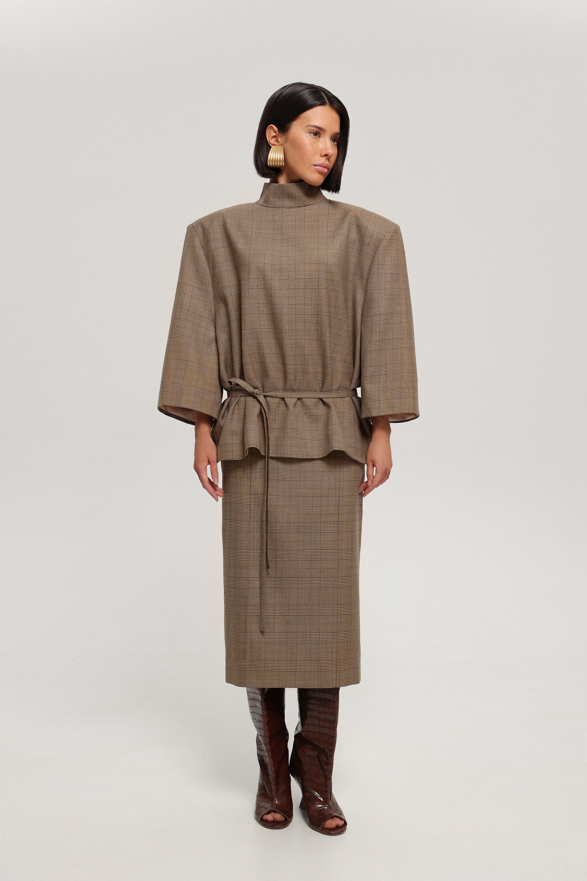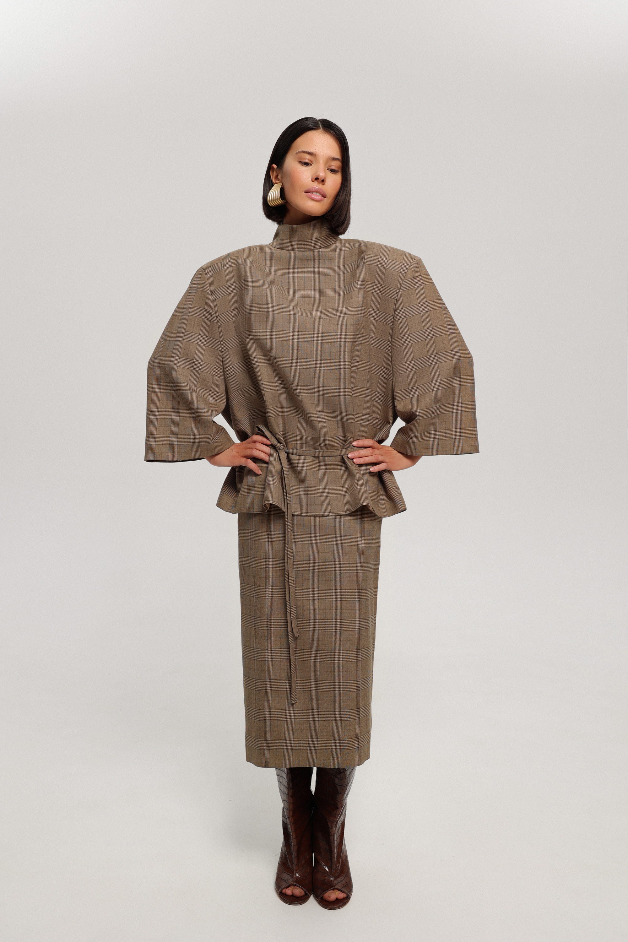 Футболка-жакет с усиленной линией плеча и укороченными рукавами, которые можно подвернуть. Застёжка на пуговице сзади и глубокий разрез добавляют выразительный акцент. Модель можно носить на обе стороны, сочетая с кружевным топ-лифом и меняя настроение образа.